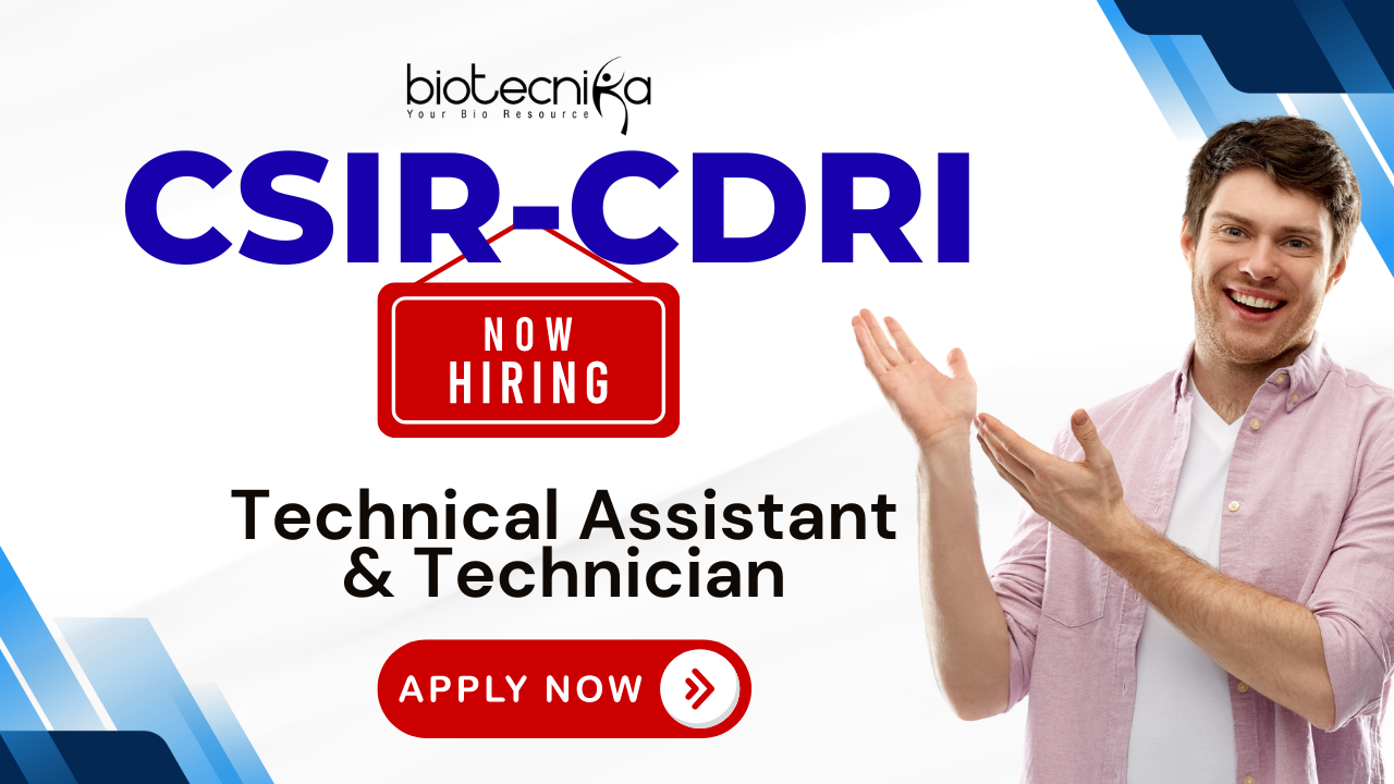 Looking for top life science jobs in India? The latest CDRI recruitment invites applications for technical assistant and Technician positions at CSIR-Central Drug Research Institute, Lucknow. This is your chance to work in cutting-edge biomedical research divisions, including Genomics, Cancer Biology, Molecular & Structural Biology, Neuroscience, Toxicology, and Laboratory Animal Facility. Explore exciting opportunities to build a rewarding career in India’s premier life science research institute.