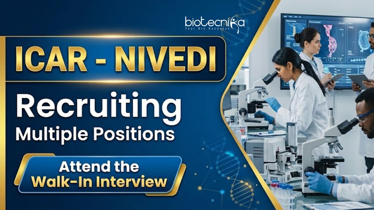 Dreaming of a stable and impactful career in life science? ICAR NIVEDI recruitment 2026 brings multiple research jobs through walk-in interviews at Bengaluru. From Senior Research Fellow to Project Associate and Young Professional roles, this research job opportunity is ideal for life science, veterinary, biotechnology, and statistics graduates seeking hands-on government research exposure.