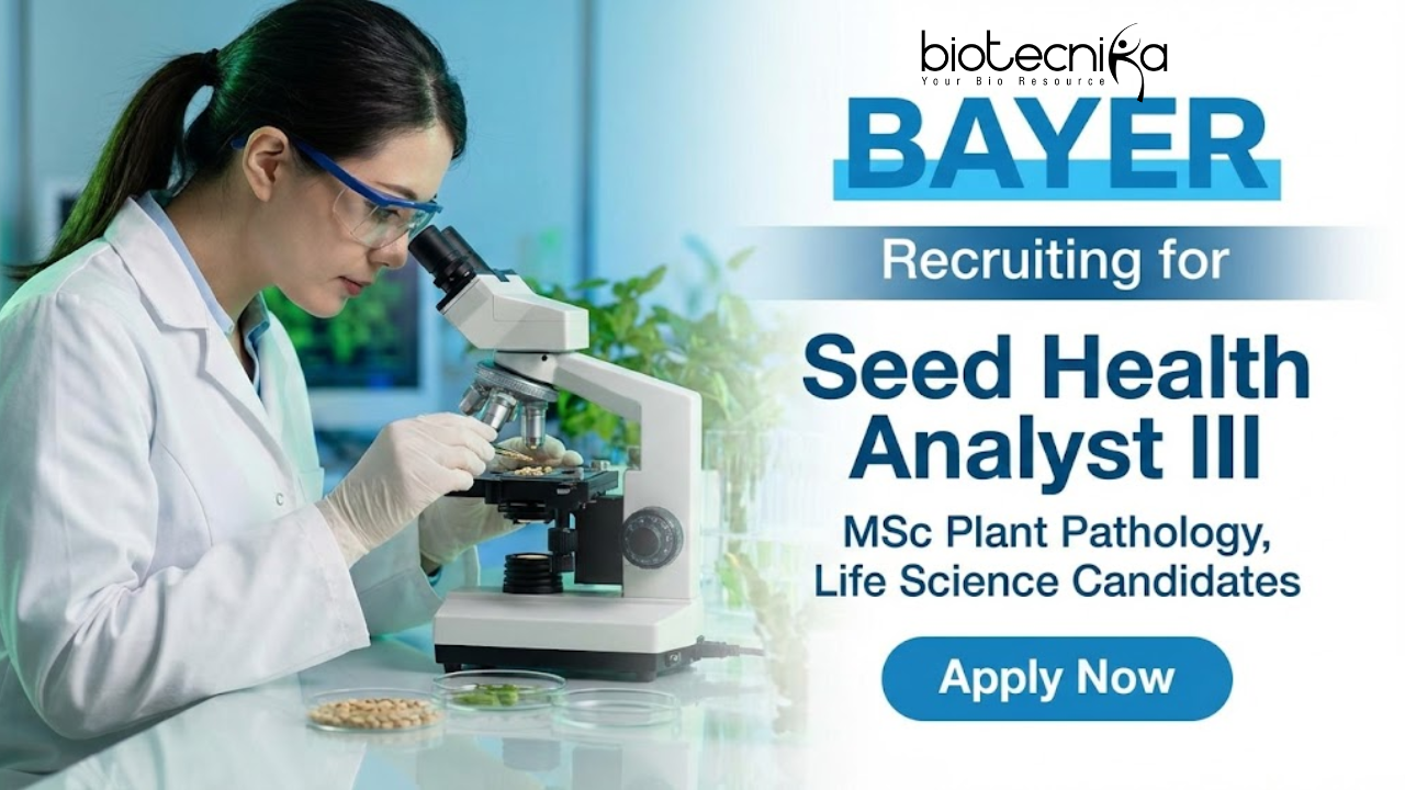 This Agriculture Jobs role at Bayer is for the position of Seed Health Analyst III in the Crop Science division at Shameerpet, Telangana. The role involves executing and managing seed health testing in vegetable crops while ensuring compliance with global quality and regulatory standards. As part of Bayer Careers, the professional will collaborate with global teams, support genetic and molecular testing, and drive continuous improvement in laboratory operations. This opportunity is ideal for candidates with a background in Plant Pathology Jobs seeking growth in agricultural biotechnology and seed quality management.
