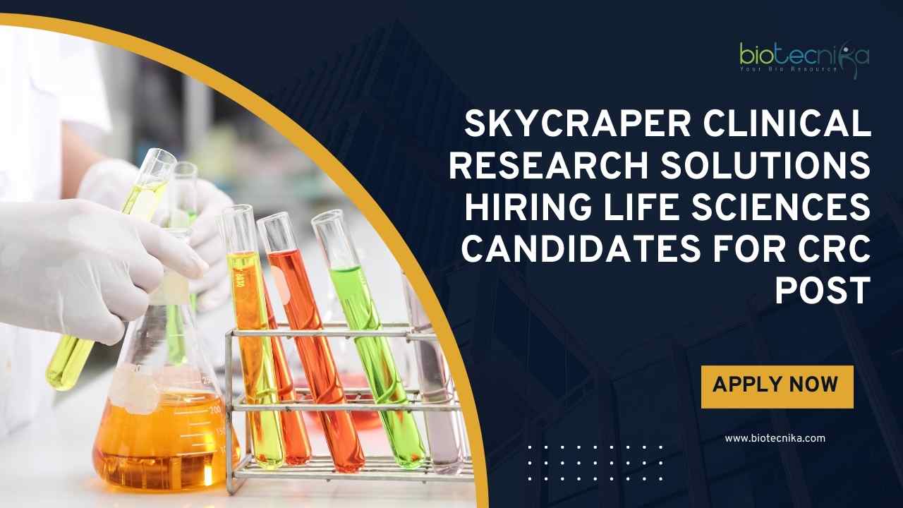 Looking to build a career in clinical research? Explore the latest CRC Job Openings at SkyCraper Clinical Research Solutions | Apply on Biotecnika and take the next step toward a rewarding role in clinical trial coordination. These opportunities are ideal for life science graduates seeking hands-on experience in site management, regulatory compliance, and ICH-GCP–aligned clinical research operations.