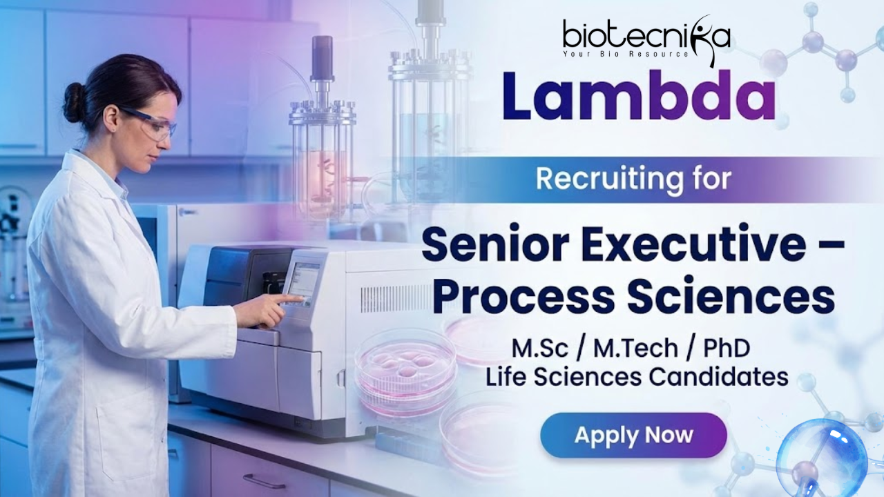Searching for executive jobs that combine advanced bioprocessing, real-world GMP exposure, and long-term career growth? Lambda Careers presents an excellent opportunity for biotechnology professionals to step into a Senior Executive – Process Sciences role. These biotechnology jobs allow candidates to work on monoclonal antibody upstream development, aseptic cell culture operations, and clinical-grade drug substance manufacturing in a global CRO environment.