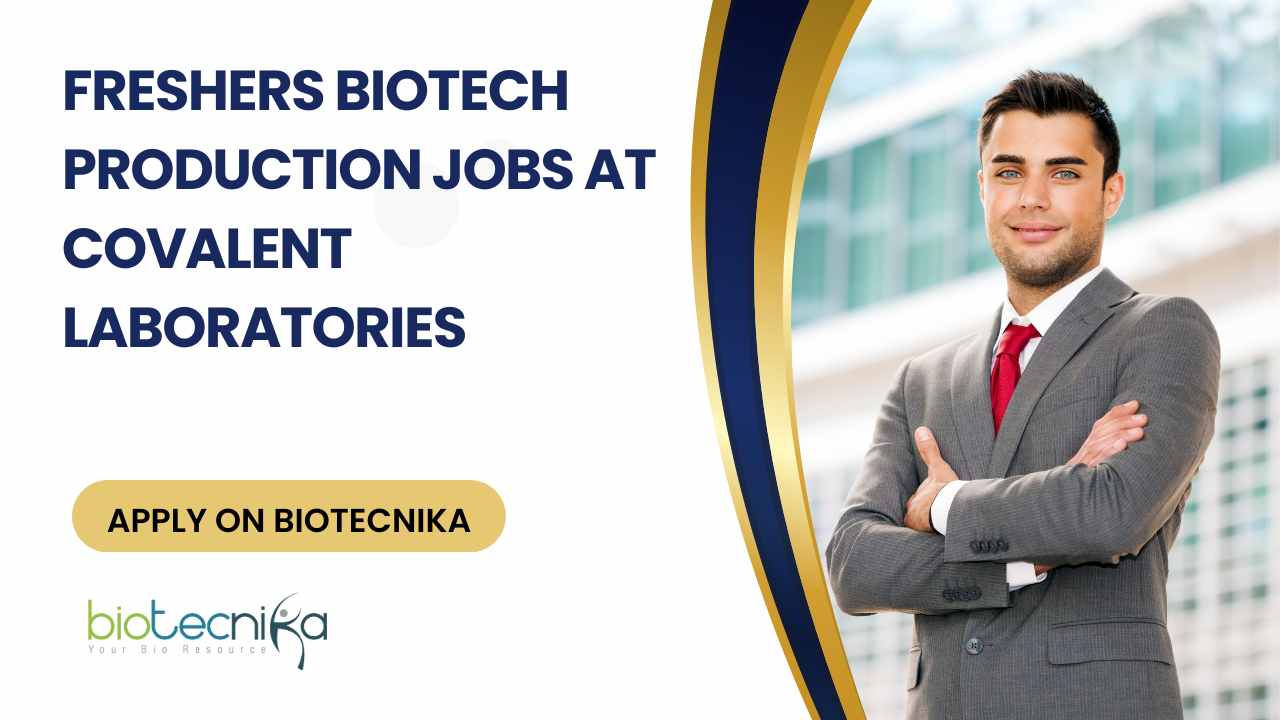 Looking to begin your career in the pharmaceutical and biotechnology industry? Explore the latest Freshers Biotech Production Jobs at Covalent Laboratories, Apply on Biotecnika and discover excellent entry-level opportunities for biotechnology and life sciences graduates. These roles offer hands-on exposure to GMP-compliant production environments, documentation practices, and regulatory workflows—making them ideal for freshers aiming to build a strong foundation in biotech manufacturing.