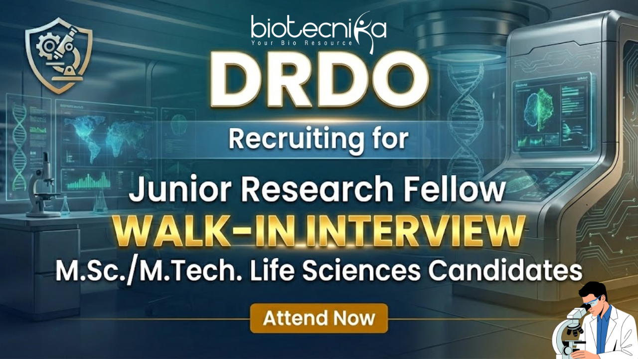 DRDO Junior Research Fellow (JRF) Recruitment | Walk-in Interview | Life Science Jobs | Attend Now