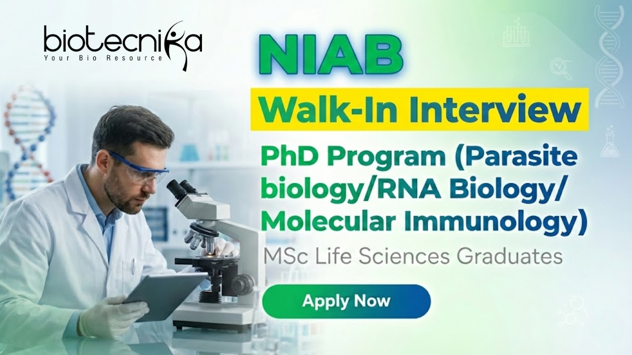 Looking to begin a research-driven career after an MSc in Life Sciences? NIAB Hyderabad invites applications through a walk-in interview for its flagship PhD program in cutting-edge areas of animal biotechnology, molecular immunology, and RNA biology.