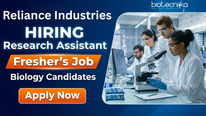 Research Assistant Job at Reliance Industries | Freshers Biology | Apply Now