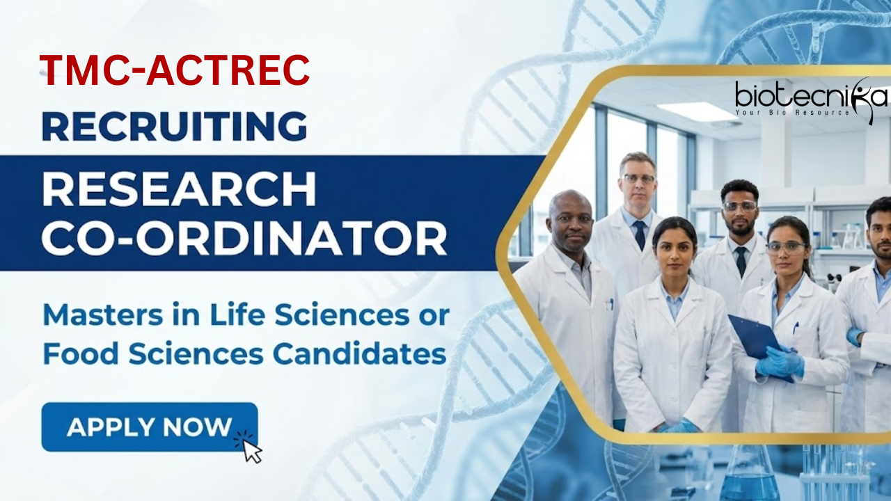 The Advanced Centre for Treatment, Research and Education in Cancer (ACTREC), the R&D wing of Tata Memorial Centre, has announced a walk-in interview for the position of Research Co-ordinator. This Research job is part of an important clinical trial investigating the nutritional impact of immune-enhancing diets on head and neck cancer patients during surgery. Joining ACTREC Recruitment offers a unique opportunity to work at the forefront of oncology research in India, specifically within the “IEDiet-HN” randomized control trial.
