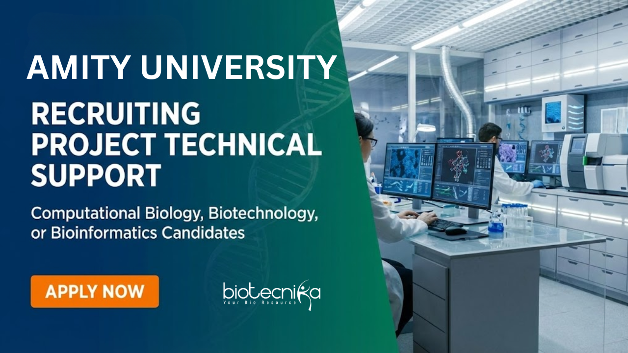 - Qualifications: B.Sc./B.Tech with three years’ experience OR M.Sc./M.Tech in Computational Biology, Biotechnology, or Bioinformatics.