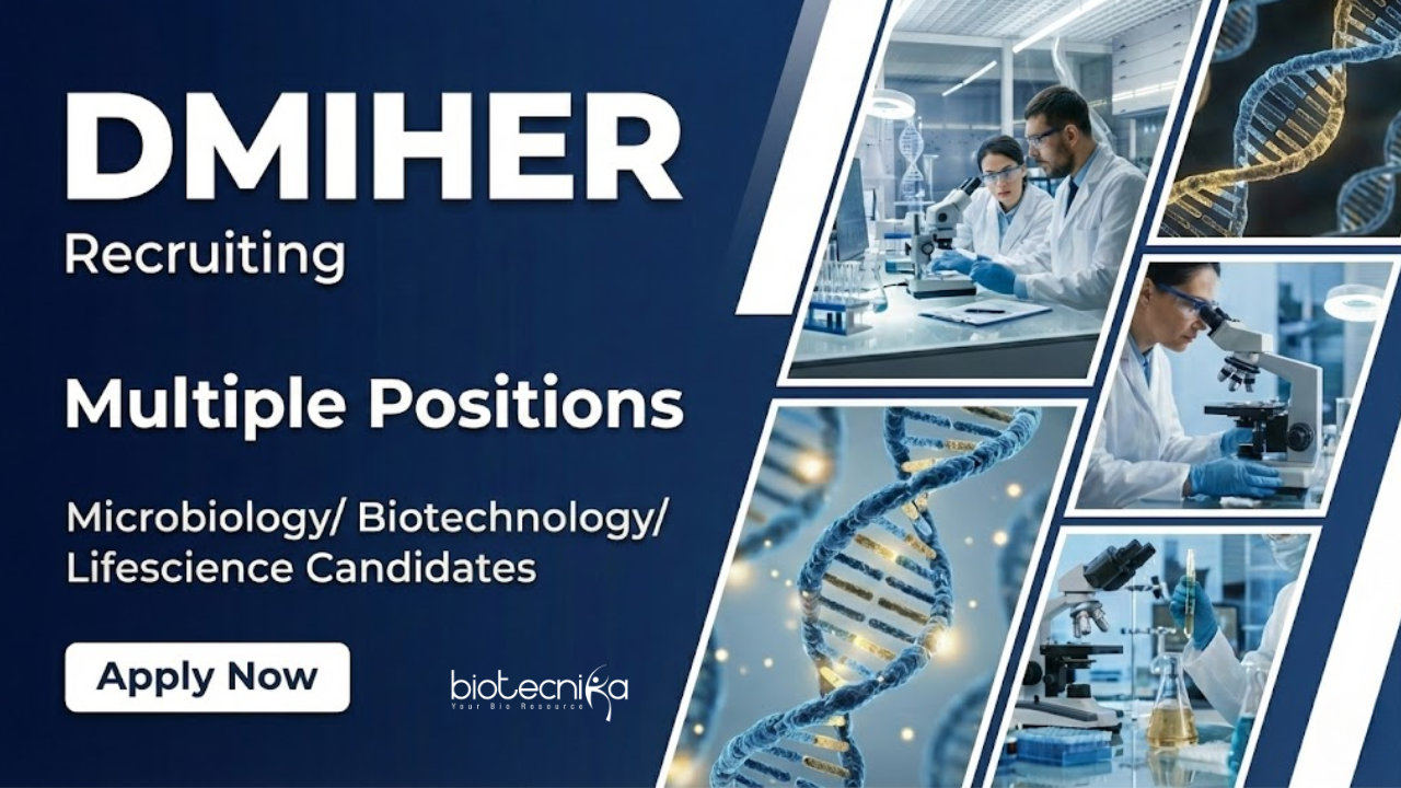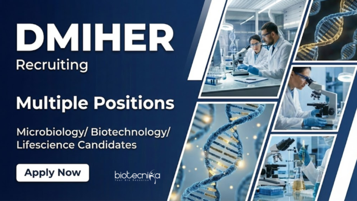 Research Jobs under an ICMR-funded project offer an excellent opportunity for aspirants aiming to build a strong career in life science and biotech jobs in India. Datta Meghe Institute of Higher Education and Research (DMIHER), Wardha, has announced multiple contractual research and laboratory positions for eligible candidates in life sciences, biotechnology, and allied disciplines.