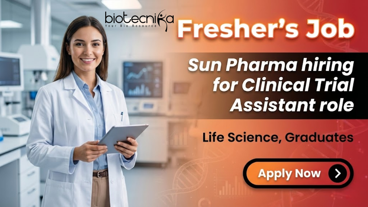 Freshers Job at Sun Pharma For Clinical Trial Assistant Role | Clinical Research Jobs