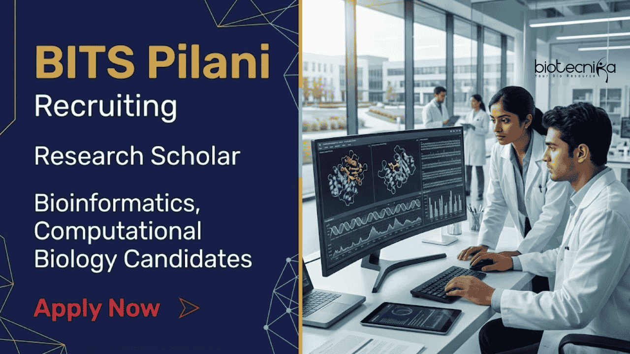 If you are searching for Bioinformatics jobs or Computational Biology jobs, the latest BITS Pilani Recruitment offers an exciting opportunity for life science graduates. BITS Pilani Hyderabad Campus is inviting applications for a Research Scholar (PhD aspirant) position in the Department of Biological Sciences. The selected candidate will work on AI-driven drug repurposing and parasitic protists research, gaining hands-on experience in protein modeling, bioinformatics analysis, and computational drug discovery.
