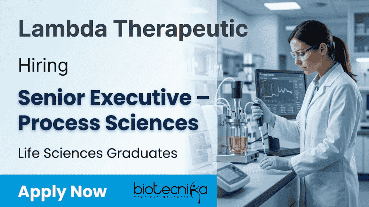 Candidates searching for Biotechnology jobs, Lambda careers, and promising Life science jobs now have an excellent opportunity with Lambda Therapeutic Research Ltd.. The organization is hiring a Senior Executive – Process Sciences to support upstream processing and cell culture activities related to monoclonal antibody development. This role offers professionals the chance to contribute to innovative research within a globally recognized clinical research organization while building a rewarding career in biotechnology and pharmaceutical research.