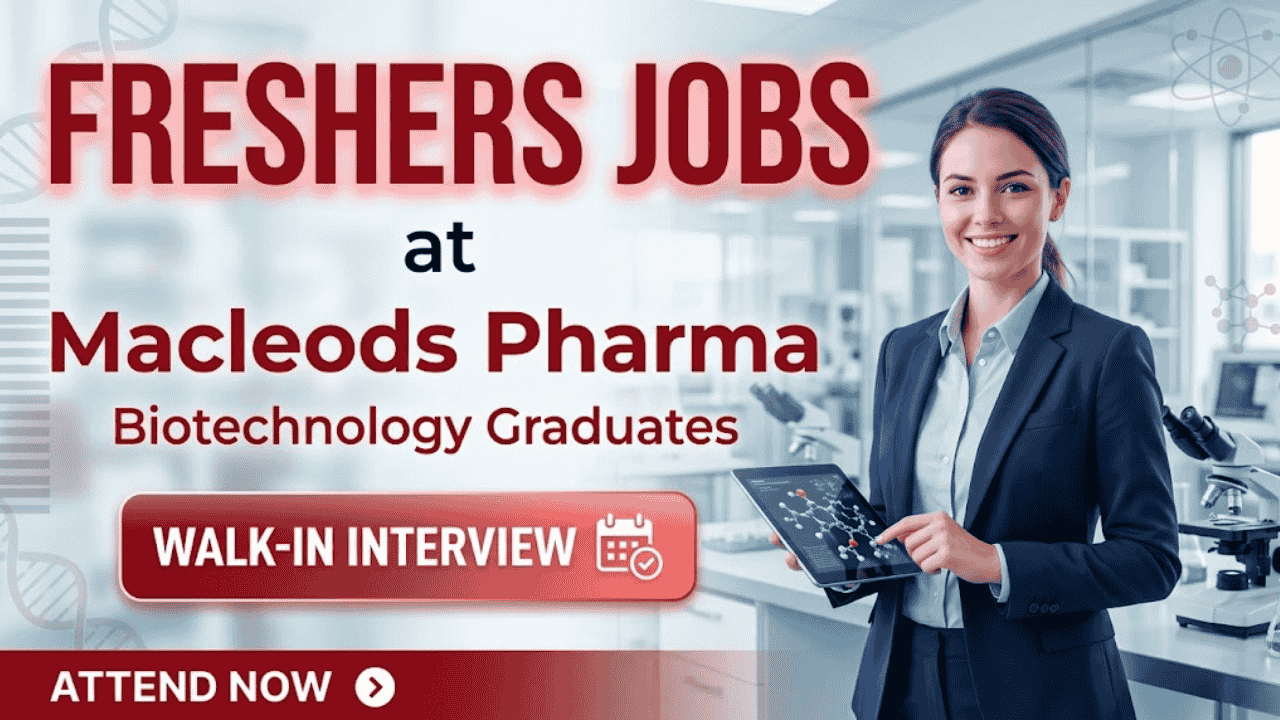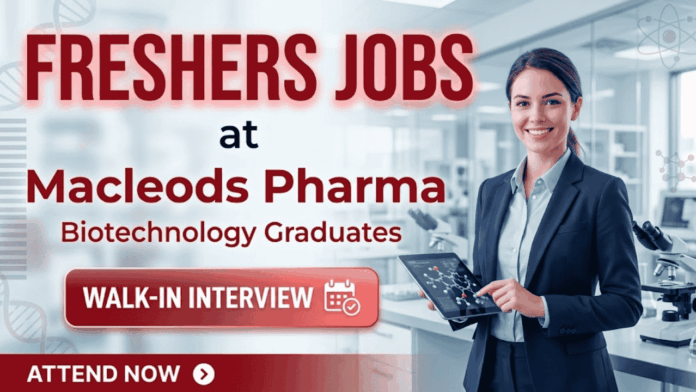 If you are searching for Biotechnology Jobs for Freshers, this is a great opportunity from Macleods Pharma. The company is conducting a walk-in interview for fresh graduates interested in Biotechnology Jobs across multiple departments including fermentation, production, and quality control. This recruitment drive also offers a training program at the Macleods Pharma Centre of Excellence, making it an excellent career start for biotechnology and life science students.