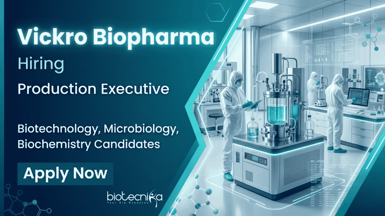 Looking for entry-level life sciences jobs in the biopharma industry? This latest opportunity at Vickro Biopharma offers exciting production executive jobs for freshers in biotechnology, microbiology, and biochemistry. If you want hands-on experience in bioprocessing and manufacturing, this is the perfect role to start your career.