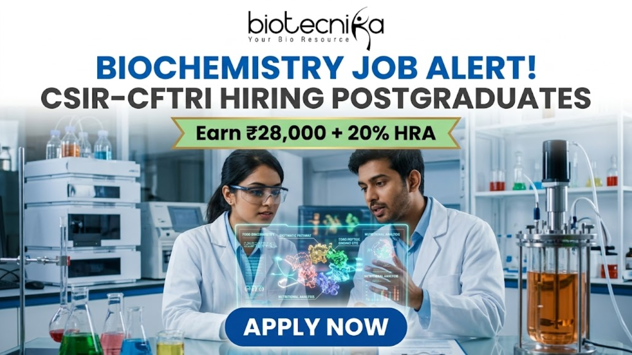 Searching for a high-impact Biochemistry Job in India? Here’s an exciting opening at CSIR-CFTRI for a Project Technical Support role. This is a great opportunity for life science graduates to work on cutting-edge metabolic health research, gain hands-on lab experience, and build a strong foundation in biochemical and molecular research.