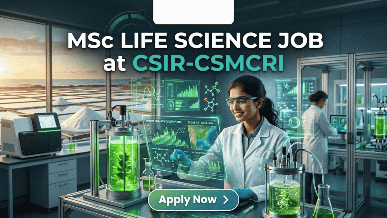Are you searching for a rewarding MSc Life Science Job in cutting-edge environmental and marine research? This is an exciting opportunity for life science graduates to join CSIR- CSMCRI as a Project Junior Research Fellow under a DBT-funded project. If you are passionate about biotechnology, marine science, or sustainable bioprocessing, this role offers hands-on experience and a strong research career pathway.