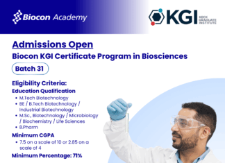 Biocon Batch 31 KGI Certificate Program in Biosciences Admissions Open Biocon KGI Certificate Program in Biosciences Biocon Academy's flagship program, the Biocon KGI Certificate Program in...