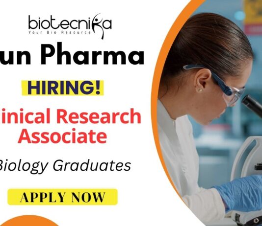 Clinical Research Associate Job at Sun Pharma | BSc & MSc Biology Apply Online
