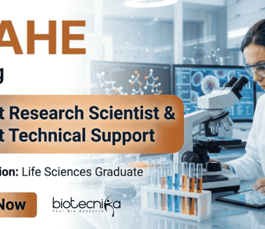Research Jobs at MAHE Recruitment for Life Sciences Research | Earn upto: Rs. 67,000 + HRA