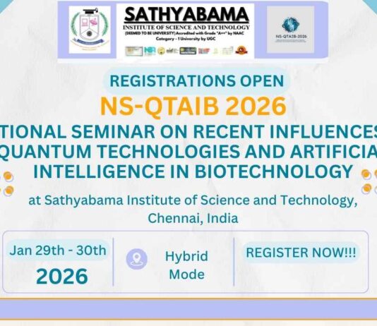 Registrations Open For National Seminar On Recent Influences of Quantum Technologies and Artificial Intelligence in Biotechnology (NS-QTAIB 2026) at Sathyabama Institute of Science and...