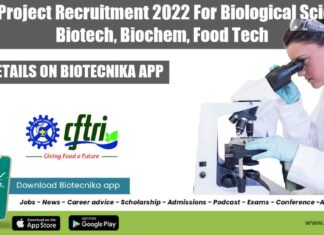 CFTRI Project Recruitment 2022 For Biological Sciences, Biotech, Biochem, Food Tech