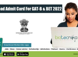 Release of Admit Cards for Graduate Aptitude Test-Biotechnology (GAT-B) / Biotechnology Eligibility Test...