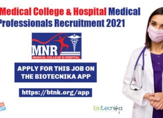 MNR Medical College & Hospital Medical Professionals Recruitment 2021
